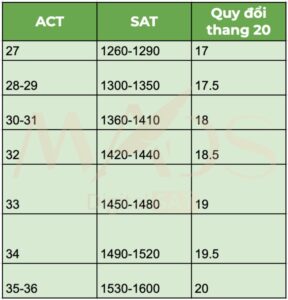 - ACT: Tăng từ 27 điểm lên 30 điểm.